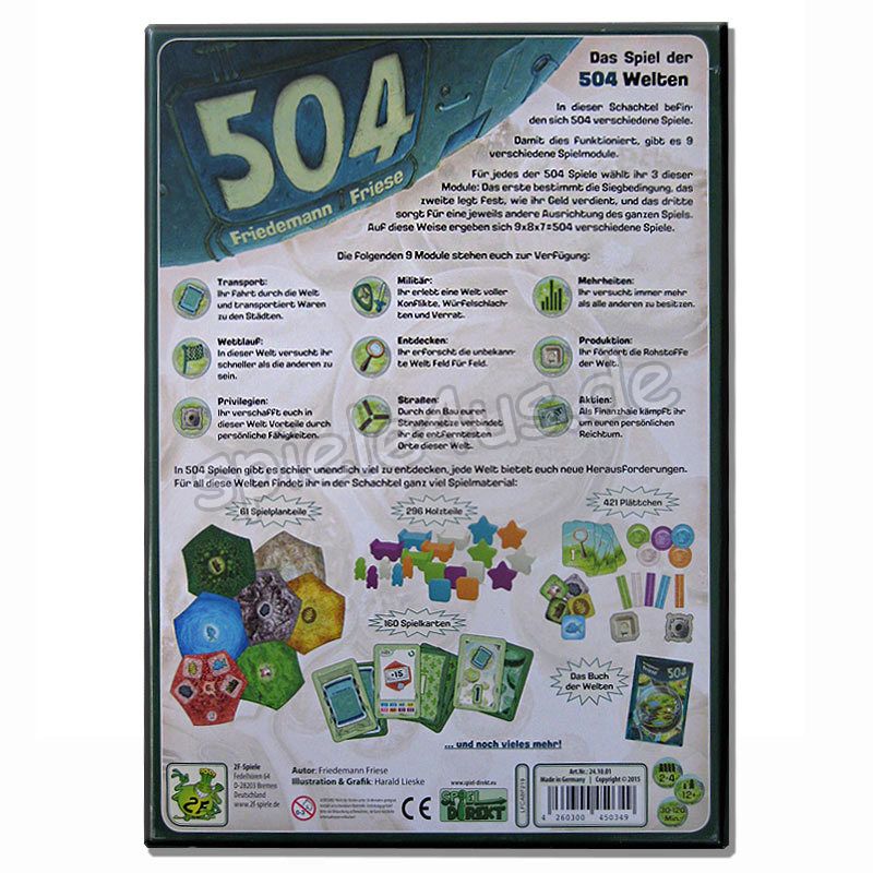504 ist ein revolutionäres modulares Spielsystem: Es bietet 504 verschiedene Spiele in einer einzigen Schachtel.