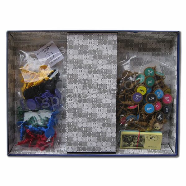 Guter, bespielter Zustand. Altersbedingte Stockflecken und leichter Geruch. Selbstverständlich vollständig und mit Spielanleitung. Die Kartonage hat deutliche Gebrauchsspuren