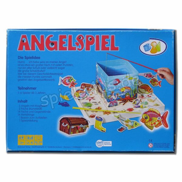 Wer sammelt bei diesem fröhlichen Angelspiel die meisten Punkte im Angelwettbewerb? 17 Objekte können aus dem Bassin mit 2 Angeln gefischt werden.