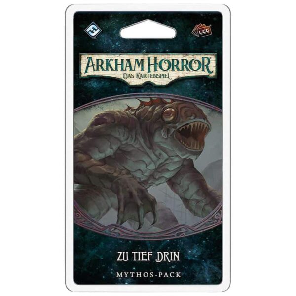 Zu tief drin, der erste Mythos Pack des Zyklus Die Innsmouth-Verschwörung für Arkham Horror: Das Kartenspiel, ist das nächste Kapitel der Geschichte, das die Ermittler tiefer in das verworrene Netz rund um ihren Besuch in Innsmouth hineinzieht. Es handelt sich jedoch nicht nur um ein neues Szenario – es gibt auch neue Spielerkarten, einschließlich mächtiger neuer Bund-Karten, die sich auf die Segens- und Fluchmarker beziehen, die mit der Erweiterung Die Innsmouth-Verschwörung eingeführt wurden.