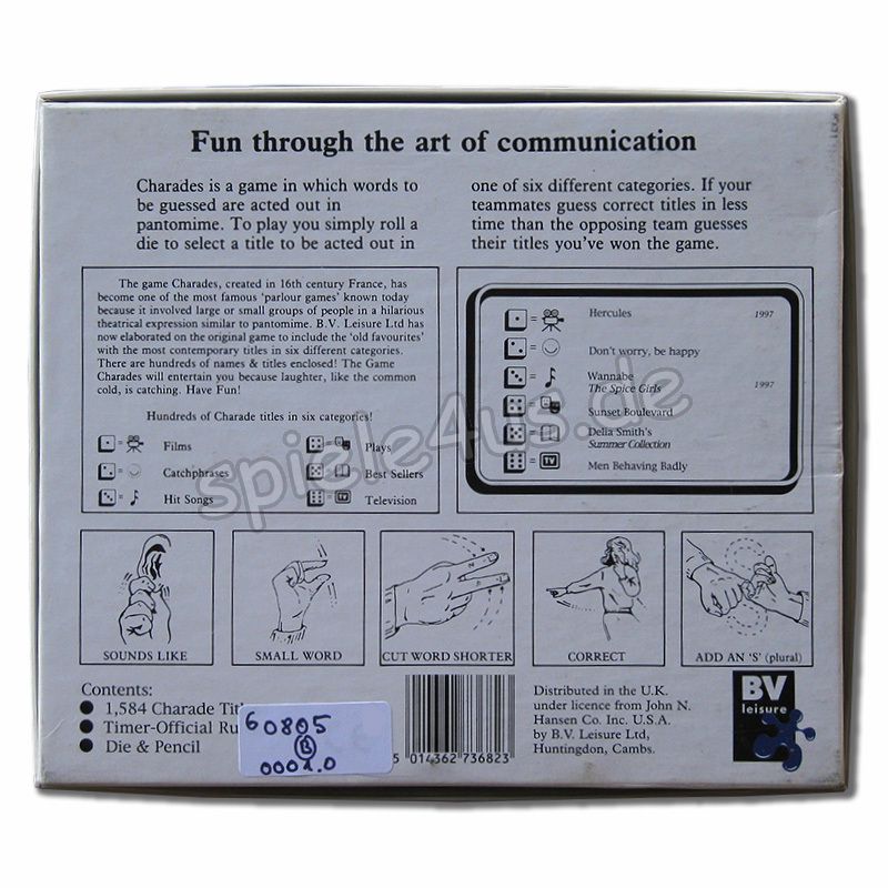 Die Karten geben 1.584 gesuchte Begriffe aus Filmen, Sprüchen, Songs, Spielen, Kunst und TV vor. Diese werden pantomimisch dargestellt und zwar so, dass sie erraten werden können. Es herrscht Redeverbot für den Darsteller!
