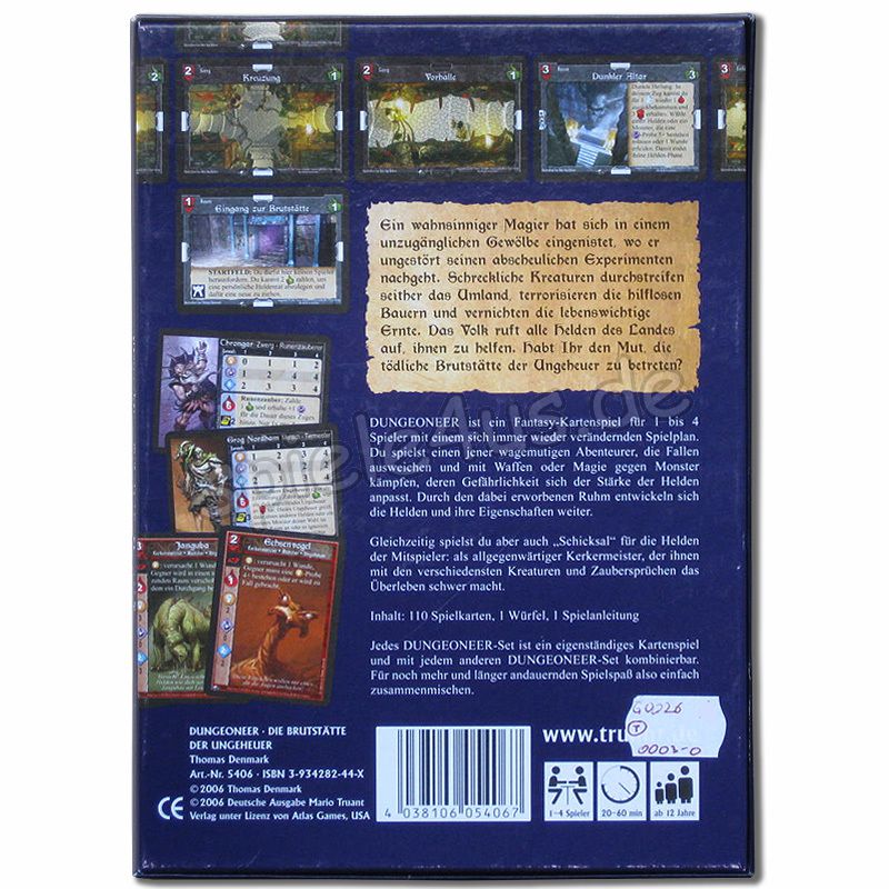Ein Fantasy-Kartenspiel mit einem sich immer wieder verändernden Spielplan. Du spielst einen jener wagemutigen Abenteurer, die Fallen ausweichen und mit Waffen oder Magie gegen Monster kämpfen, deren Gefährlichkeit sich der Stärke der Helden anpasst. Durch den dabei erworbenen Ruhm entwickeln sich die Helden und ihre Eigenschaften weiter. Gleichzeitig spielst du aber auch Schicksal für die Helden der Mitspieler: als allgegenwärtiger Kerkermeister, der ihnen mit den verschiedensten Kreaturen und Zaubersprüchen das Überleben schwer macht. Jedes Dungeoneer-Set ist ein eigenständiges Kartenspiel und mit jedem anderen DUNGEONEER-Set kombinierbar. Für noch mehr und länger andauernden Spielspaß also einfach zusammenmischen.