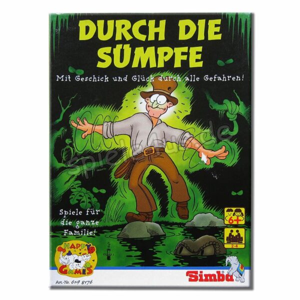 Bahnt euch den Weg quer durch den Sumpf bis zum sicheren Landungssteg. Die Chips, die man erwürfeln kann, dienen als sicherer Weg zum nahen Ufer und zum Ziel. Doch Vorsicht, würfelt man zwei gleiche, verliert man die neu erwürfelten Chips.