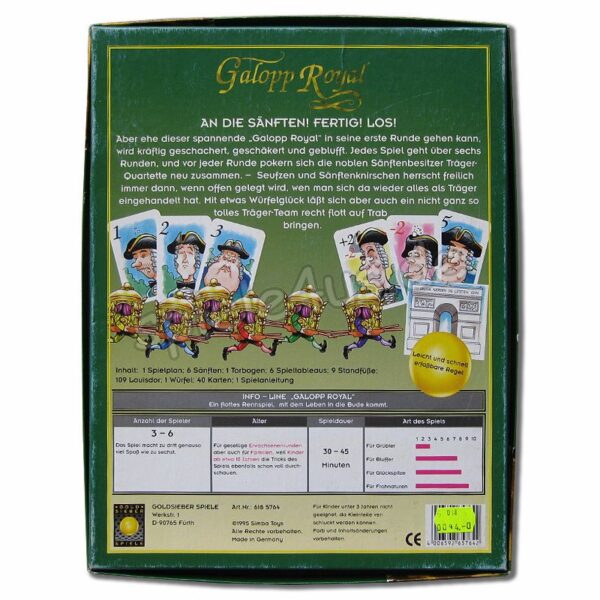 Bevor es in die erste Runde gehen kann, wird kräftig geschachert, geschäkert und geblufft. Vor jeder Runde können sich die noblen Sänftenbesitzer vier Träger neu zusammen pokern. Seufzen und Zähneknirschenherrscht freilich immer dann, wenn offen gelegt wird, wen man sich da wieder alles als Träger eingehandelt hat. Mit etwas Würfelglück lässt sich aber auch ein nicht ganz so tolles Trägerteam recht flott auf Trab bringen.
