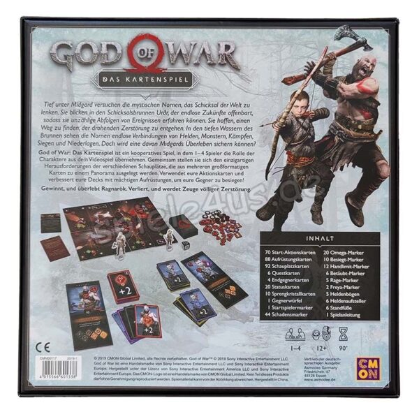 God of War: Das Kartenspiel ist ein kooperatives Spiel, in dem 1– 4 Spieler die Rolle der Charaktere aus dem Videospiel übernehmen. Gemeinsam stellen sie sich den einzigartigen Herausforderungen der verschiedenen Schauplätze, die aus mehreren großformatigen Karten zu einem Panorama ausgelegt werden. Verwendet eure Aktionskarten und verbessert eure Decks mit mächtigen Aufrüstungen, um eure Gegner zu besiegen! Gewinnt, und überlebt Ragnarök. Verliert, und werdet Zeuge völliger Zerstörung.