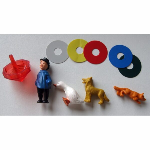 Ist die goldene Gans oder der Jäger schneller? Bei diesem Glückskreisel-Spiel ist Geschicklichkeit Trumpf. Über die Anzahl der Züge entscheidet die Anzahl der Ringe, die von den Spielern auf den Kreisel geworfen werden.