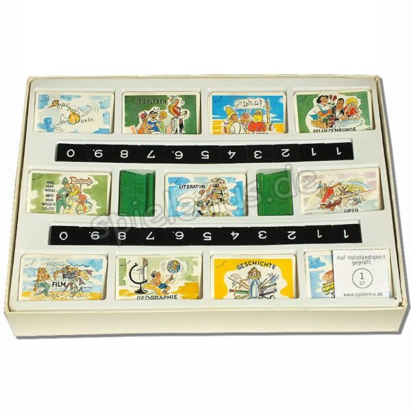 Ein schönes, altes Fragespiel mit Heinz Maegerlein. Die Kartonage wurde mehrfach mit Tesa verstärkt und hat deutliche Druckstellen! Die Anleitung ist als Kopie enthalten und hat oben nicht die Nr. 611 sondern Nr. 212 stehen. Die Karten haben unterschiedliche Schriftarten.