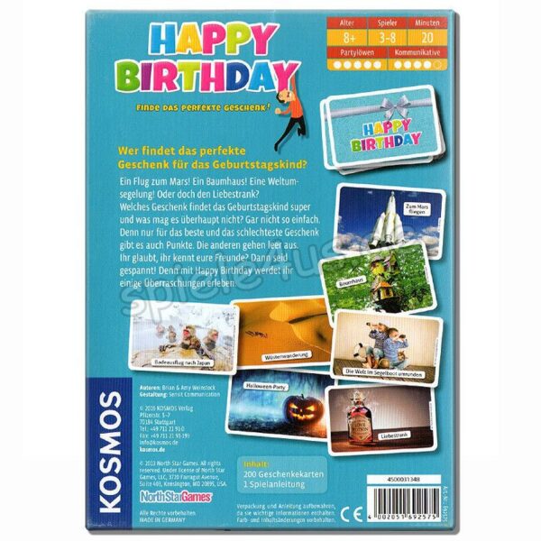 Wer findet das perfekte Geschenk für das Geburtstagskind? Ein Flug zum Mars! Ein Baumhaus! Eine Weltumsegelung! Oder doch den Liebestrank? Welches Geschenk findet das Geburtstagskind super und was mag es überhaupt nicht? Gar nicht so einfach. Denn nur für das beste und das schlechteste Geschenk gibt es auch Punkte. Die anderen gehen leer aus.