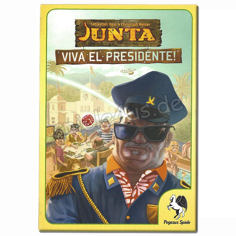 Einer der größten Brettspielklassiker ist das satirische Junta, bei dem die Spieler als Angehörige einer korrupten Militärdiktatur auf der República de las Bananas um Macht und Geld für ihr Schweizer Bankkonto kämpfen. Diese Spielidee führt nun Junta: Viva el Presidente! fort.