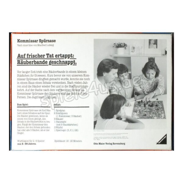 Kommissar Spürnase ist fünf Räubern eines Schatzes auf der Spur. Die Räuber gewinnen, wenn es einem von ihnen gelingt, den Schatz in die Räuberhöhle zu tragen. Fängt der Kommissar den Räuber, der den Schatz gefunden hat oder alle 5 Räuber, ist er der Sieger.
