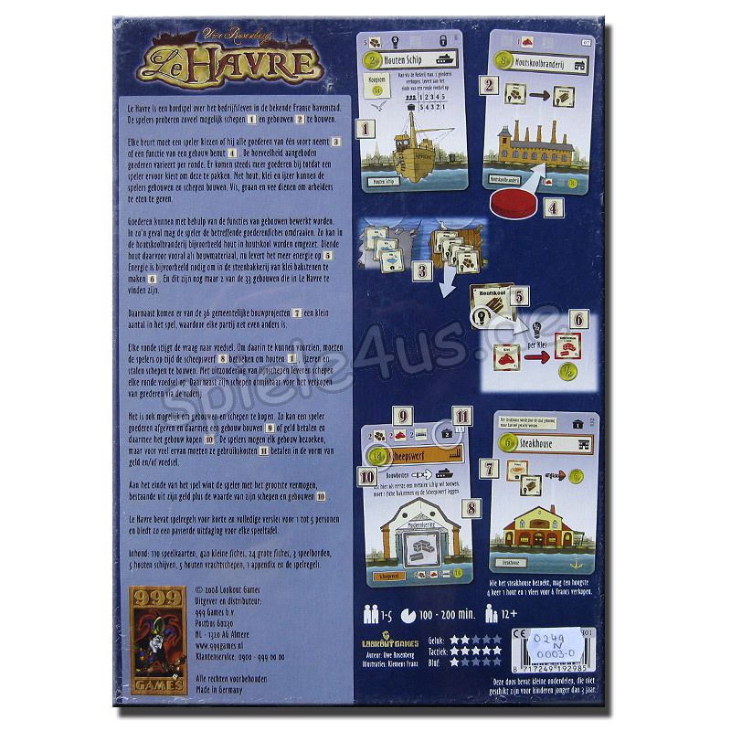 So viele Möglichkeiten! So wenig Zeit bis zum Rundenende! Le Havre ist ein Entwicklungsspiel rund um einen großen Hafen, das auch solitär zu spielen ist. Es enthält zusätzlich Regeln für eine Kurzspielversion.
