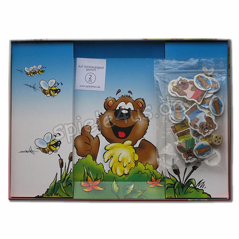 Da läuft unseren Bären ganz schön das Wasser im Mund zusammen. Die Bienen auf der anderen Seite des Sees haben fleißig Honig gesammelt. Jetzt heißt es für die Bären nichts wie hin. Dabei wird von Baumstamm zu Baumstamm gehüpft. Die sind wackelig und das Wegschnappen und herauswerfen ist auch erlaubt. Das bringt Spaß – aber Vorsicht – auch neue Verfolger! Wer sich den meisten Honig holt, wird bärenstarker Gewinner.