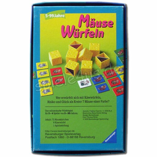 Wer schafft es zuerst sich mit Käsewürfeln, Risiko und Glück 7 Mäuse in einer gleichen Farbe zu erwürfeln?