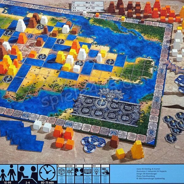 Das Reich der Mexica liegt vor Euch. Vom künftigen Ruhm und Reichtum der Azteken-Hauptstadt ist noch nichts zu ahnen. Beteiligt Euch am Bau dieser Stadt und sichert Euch dabei die nötigen Siegpunkte.