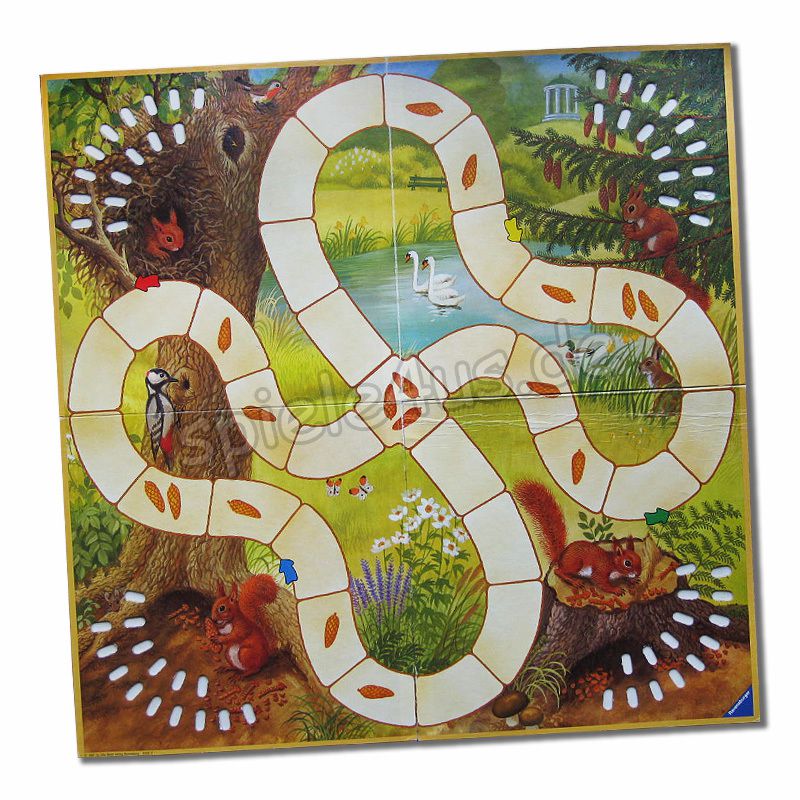 Leckere Tannenzapfen finden die kleinen Eichhörnchen im Park. Eifrig sammeln und verstecken sie diese. Leider können sie nicht alle auf einmal tragen. Vielleicht treffen sie ja auch einen Freund, dem sie welche abgegeben möchten? Doch Vorsicht, die Beute kann auch weggenommen werden.