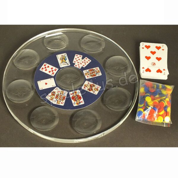 Ein Pochspiel mit einem Pochbrett aus Plexiglas und Zubehör.