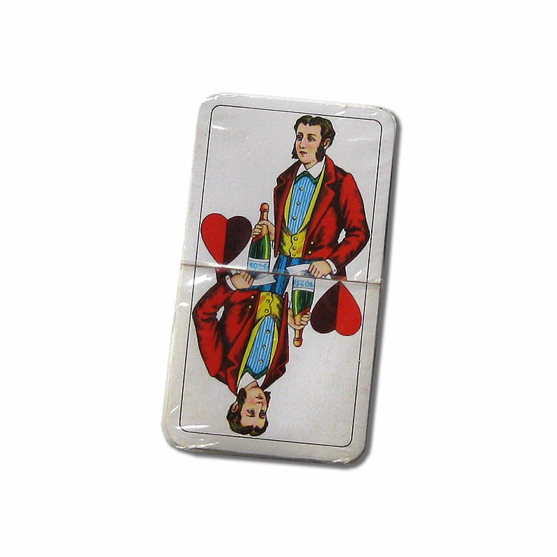 Spielkartenset mit blauer RS u.a. mit Herzen und Adler und Beschriftung Hallesche Adler Karte.