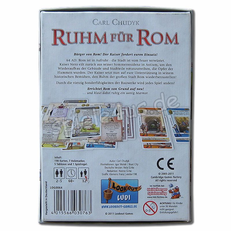 Rom ist in Aufruhr – die Stadt ist vom Feuer verwüstet. Kaiser Nero eilt zurück aus seiner Sommerresidenz in Antium, um den Wiederaufbau der Gebäude und Stadtteile voranzutreiben, die Opfer der Flammen wurden. Der Kaiser setzt nun auf eure Unterstützung in seinem historischen Bemühen, den Ruhm der großen Stadt Rom wiederherzustellen! Durch die vierzig Sonderfähigkeiten der Bauwerke wird jedes Spiel anders! Errichtet Rom von Grund auf neu.