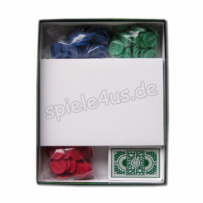 Ziel des Spiels ist es, als erster Spieler oder erstes Team ZWEI SEQUENCEN zu bilden, d.h. zwei Reihen mit je 5 Spielsteinen abzulegen. Eine Sequence besteht aus einer vollständigen Reihe von 5 Spielsteinen in derselben Farbe. Die Sequence kann horizontal, vertikal oder diagonal auf dem Spielbrett verlaufen.