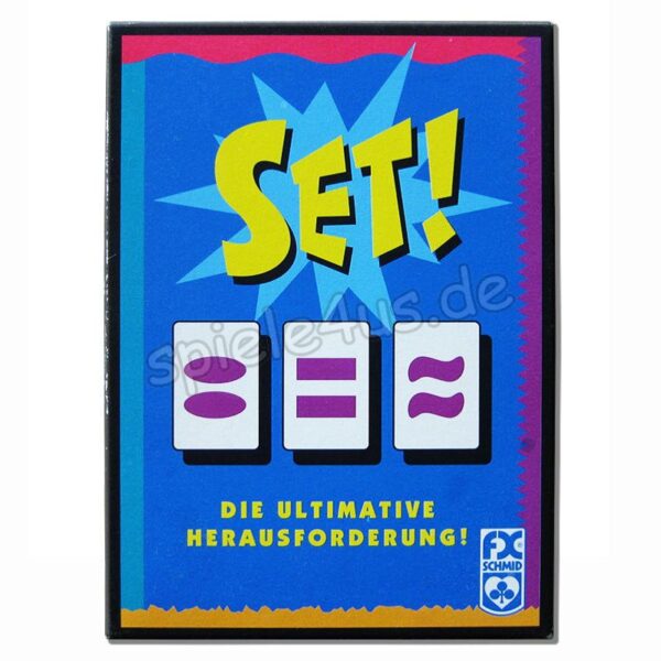 81 verschiedene Karten, immer 3 Karten bilden ein Set WENN jede der 4 folgenden Eigenschaften jeweils verschieden oder gleich ist: Menge, Farbe, Form und Füllung. Wer suchet, der findet. Doch nur der Schellste siegt!