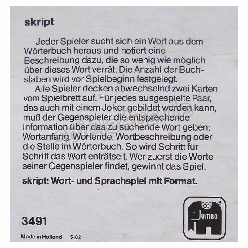 Jeder Spieler sucht sich ein Wort aus dem Wörterbuch heraus und notiert eine möglichst geheimnisvolle Beschreibung dazu. Die Gegner versuchen Schritt für Schritt das Wort zu enträtseln indem sie (vorausgesetzt sie können ein Kartenpaar bilden) dem Rätselsteller jeweils eine Information zu Wortanfang oder -ende, Wortbeschreibung oder die passende Stelle im Wörterbuch entlocken.