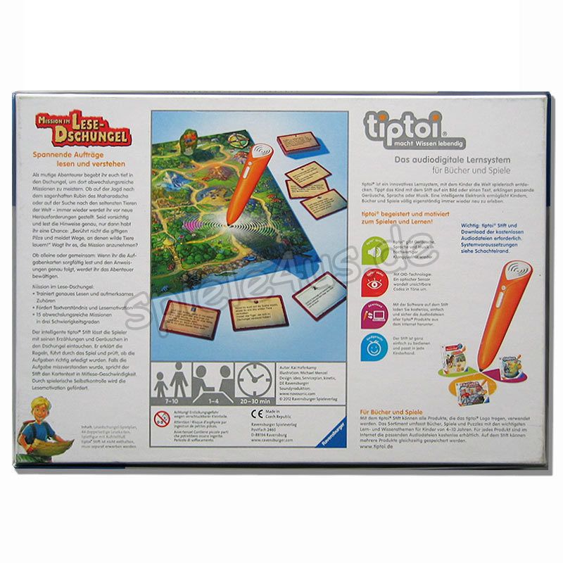 Abwechslungsreiche Missionen im Dschungel fordern dich oder dein Team heraus. Hört genau zu und lest die Hinweise genau. So könnt Ihr oder du alleine die Abenteuer in 3 Schwierigkeitsgraden bewältigen. Spielbar nur zusammen mit dem TipToi Stift (dieser gehört nicht zur Spielaustattung und muss separat erworben werden)!