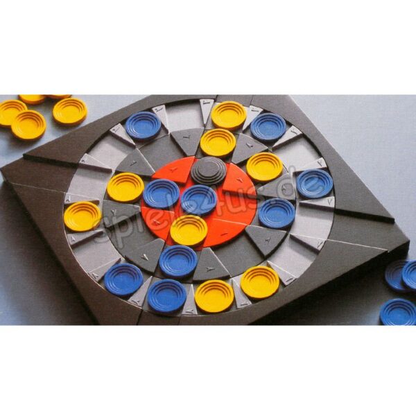 Steine in das Spielgerät schieben und einen Ring drehen. Ganz einfach? Als Erster im Zentrum eine Reihe aus drei Steinen der eigenen Farbe bilden. Gleichzeitig den Gegner davon abhalten, dies zu erreichen. Hier heißt es Nerven behalten. Denn sonst verliert man schnell die Übersicht!